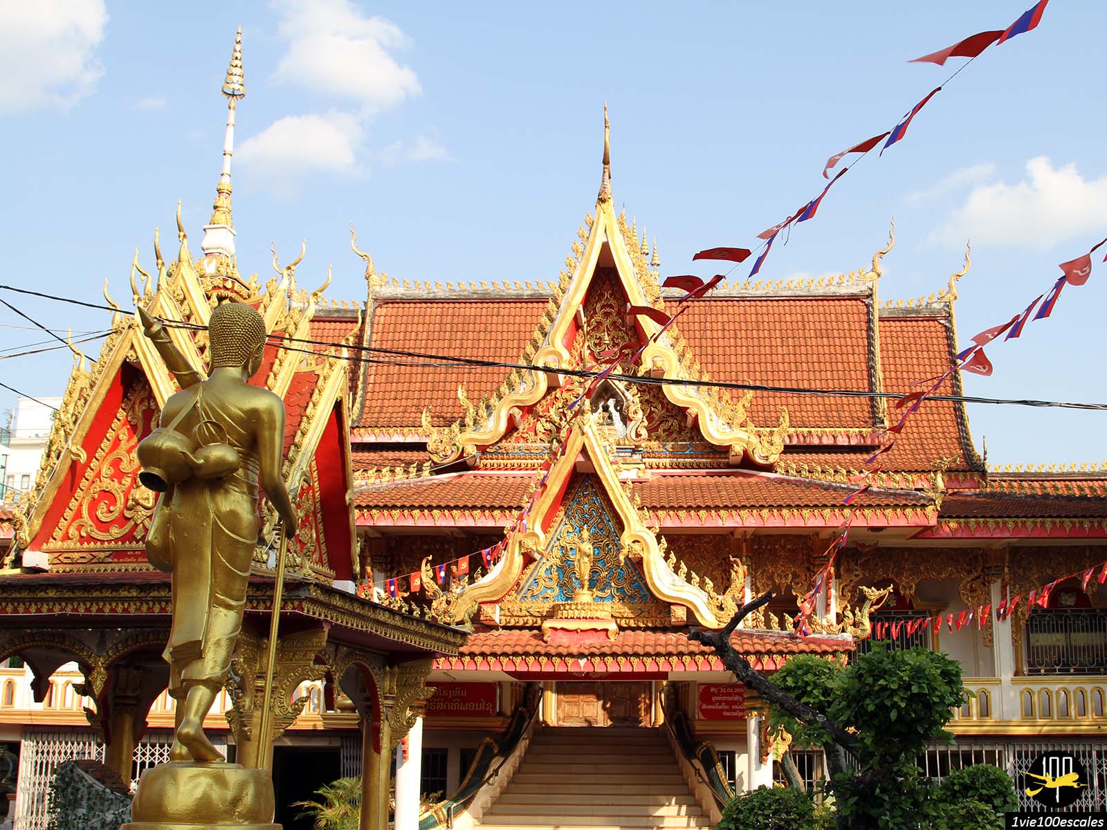 À Vientiane, les lieux d’intérêt se découvrent entre temples, monuments et balades le long du fleuve. La promenade du quai Fa Ngum au bord du Mékong est incontournable, notamment en fin de journée lorsque le night market s’anime autour de la statue de Chao Anouvong. Le centre-ville concentre plusieurs temples remarquables comme Ho Kang Temple, Wat Inpeng, Wat Ong Teu, Wat Haysoke, Wat Chan et Wat Xieng Nyeun, ainsi que le Presidential Palace, Vat Phra Kèo et le Temple Si Saket, parmi les plus emblématiques de la capitale. D’autres sites religieux importants complètent la visite, notamment Vat Simuong, Wat Phiawat, Wat That Khao, l’Église du Sacré-Cœur et surtout le majestueux Pha That Luang, symbole national du Laos. Les voyageurs peuvent aussi découvrir le Patuxai, arc de triomphe local, le Reclining Buddha, Wat That Phoun, Chua Phat Tich Temple et la mystérieuse That Dam Stupa. Pour une immersion dans la vie locale, les marchés comme Thong Khan Kham Market, Ban Anou Night Market et Vientiane Night Food Market sont très animés. Enfin, le Lao National Cultural Hall, les nombreux temples comme Wat Sithan Nue, Wat Nong Duang, Dongpalaeb Temple, Vat Pa Nong Bouathong, le Bang Long Vietnamese Temple, ainsi que le Street Art Wall et l’original Electric Pole Super Star complètent la découverte d’une capitale paisible mêlant culture, spiritualité et ambiance locale.